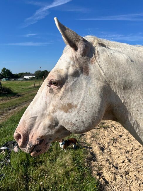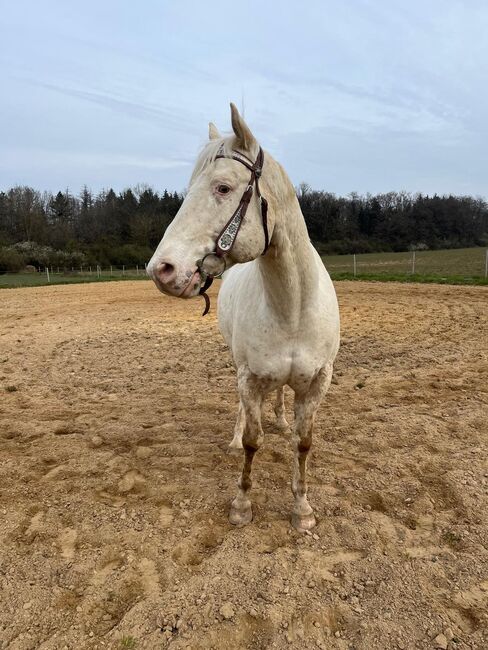 Droom Appaloosa met karakter van goud is op zoek naar zijn mens - Plaats: 66809 Nalbach FH Special Jasper is een prachtige Appaloosa ruin, geboren in oktober 2018, met een uitzonderlijke Few-Spot kleur en een stokmaat van ca. 154 cm. Hij maakt niet alleen indruk met zijn bijzondere verschijning, maar ook met zijn correcte bouw, een solide, sterk fundament en een compact en goed gespierd uiterlijk met sterke botten. De ruin is blootsvoets, gezond en heeft nooit ziektes gehad. Hij is 5-panel n/n getest door zijn ouders. Hij is zeer vertrouwd met de dierenarts en hoefsmid, evenals met regelmatig ontwormen. Jasper is vertrouwd met zowel open stallen als boxstallen en is opgegroeid in een gemengde kudde. Hij is heel ongecompliceerd in het dagelijks leven en is makkelijk in de omgang. Vooral zijn aanhankelijke karakter valt op. De ruin is zeer mensgericht, rustig, braaf en gelijkmatig van karakter. Hij probeert altijd alles goed te doen, leert snel en heeft een aangenaam, evenwichtig temperament. Jasper is betrouwbaar onder het zadel en maakt indruk met zijn zachte, aangename gangen. Hij gaat goed zelfstandig de wei in en is daarom ideaal voor beginners en herintreders. Jasper heeft een gedegen westerntraining, maar is nog niet op wedstrijden uitgebracht. Zijn goede afstamming en zijn "karakter van goud" maken hem een geweldige vrijetijdspartner voor vele plezierige en ontspannen uren in het zadel. De AphC papieren zijn natuurlijk aanwezig.