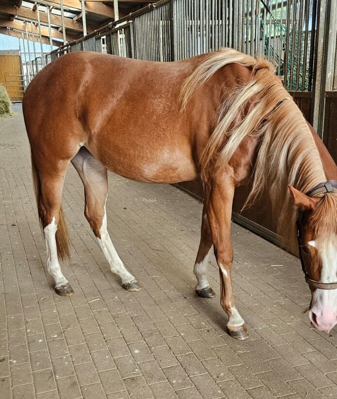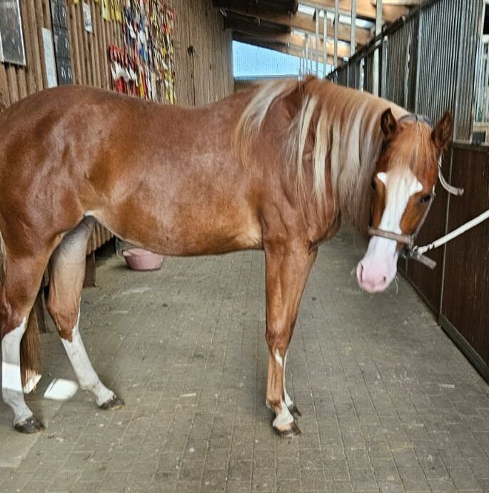 Droom puppy op zoek naar een nieuw thuis (Paint Horse) - Plaats: 39448 Etgersleben Deze prachtige Gunnerenkelin is op zoek naar een nieuw thuis. Het liefst in een showhuis, maar dat hoeft niet. LDR Guns In Moonlight is een absolute blikvanger met haar lichtgekleurde manen en sterke bouw. Ook scoort ze met een super lief karakter. Ze is geboren in 2022 en heeft een geschatte eindhoogte van 152 cm. Foundation bloed met een sterk fundament en mega bouw. Ze is een reguliere geregistreerde Paint met Sw 1 kleur gen en 6-panel n/n. Sophia is goed verzorgd en behandeld. Ze wordt momenteel gelongeerd en kent grondwerk. Beide ouders zijn succesvol uitgebracht. Haar vader LDR Guns Of Enterprise is gekeurd en APHA kampioen. Haar moeder is ook succesvol uitgebracht. Sophia kwalificeerde zich voor de Duitse veulenkampioenschappen en behoorde tot de 10 beste merrieveulens. Wordt verkocht door de fokker.