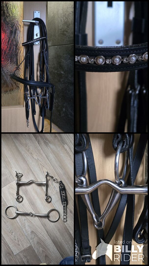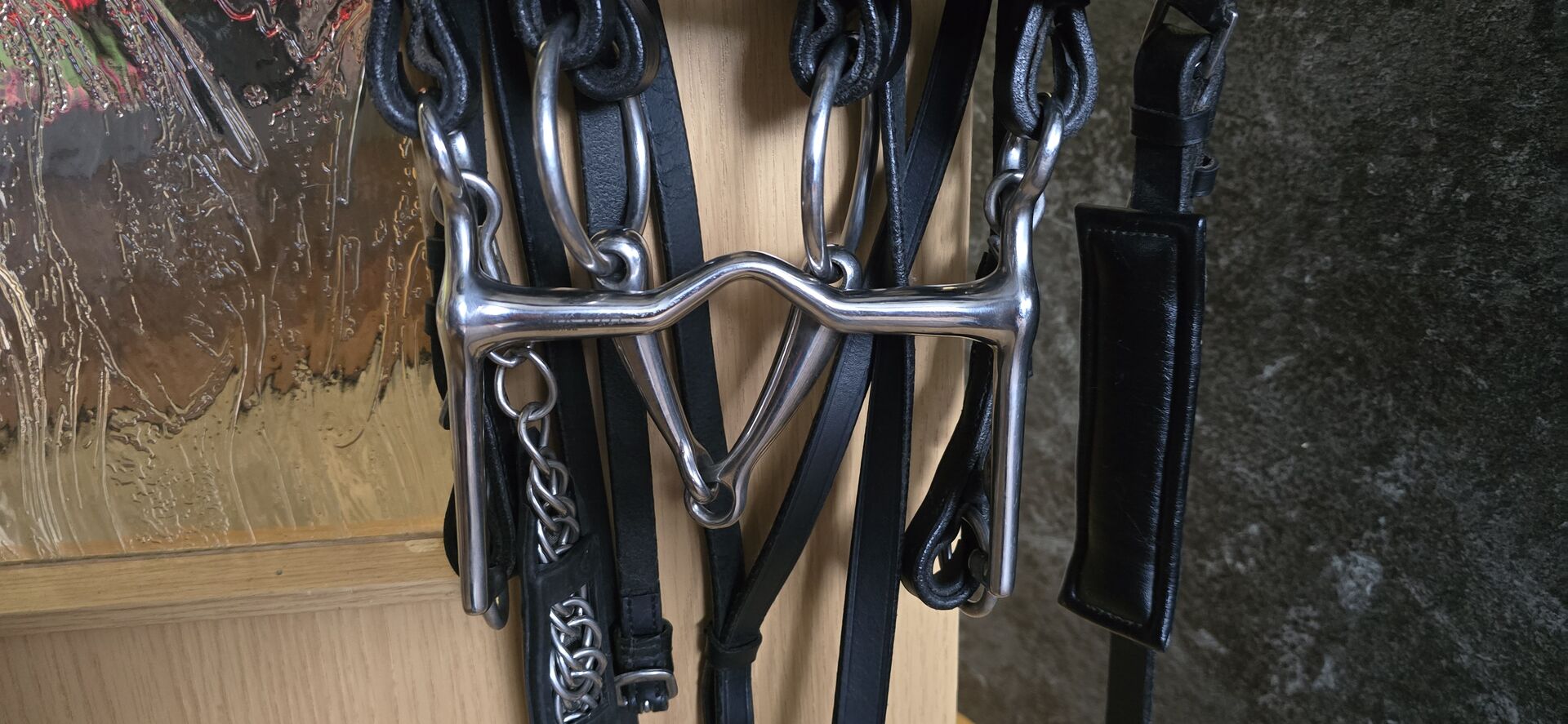 Dubbel hoofdstel met Zweedse neusriem incl. bitten & teugels maat WB - Ik verkoop een compleet dubbel hoofdstel inclusief bitten en teugels. Het hoofdstel is slechts een paar keer gebruikt in training en op een show. Het is in zeer goede staat. De neusriem is een Zweedse caveson met een gesp.