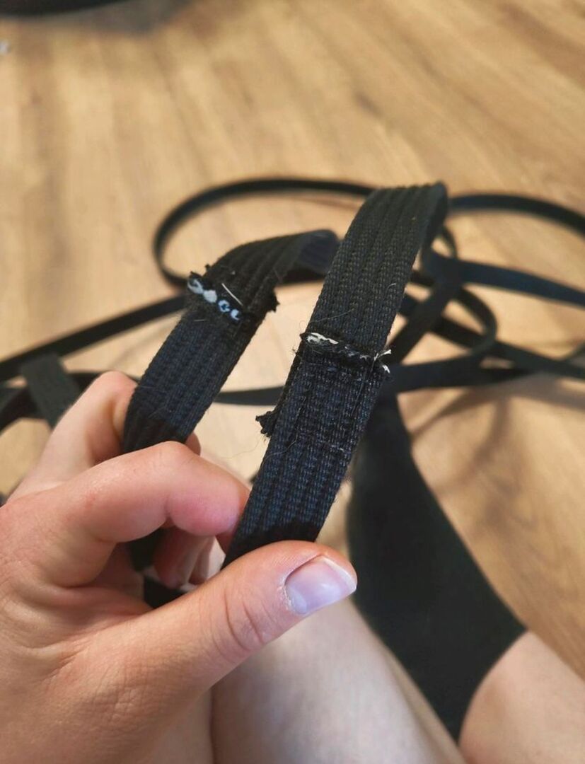 Ik heb hem op twee plaatsen gestikt, zie foto, omdat iemand hem destijds gewoon heeft doorgeknipt.