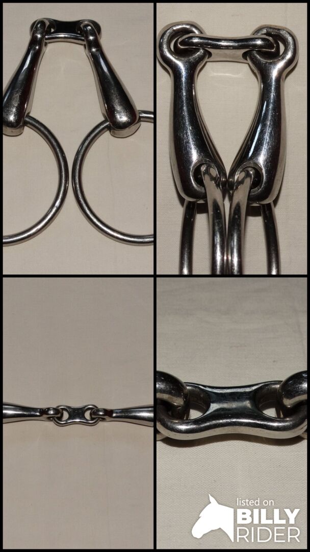 Dubbelgebroken waterbit 14 cm stevig bit voor snaffel 2 cm dikke plaat dubbelgebroken - Weinig gebruikt, dubbelgebroken bit te koop. Maat 14 cm. Ca. 2 cm dik. Diameter binnenring 6,6 cm. Weegt 293 gram. Middenstuk is een plaat. Goed voor het trainen van jonge paarden. Zie foto's voor conditie, dank u!