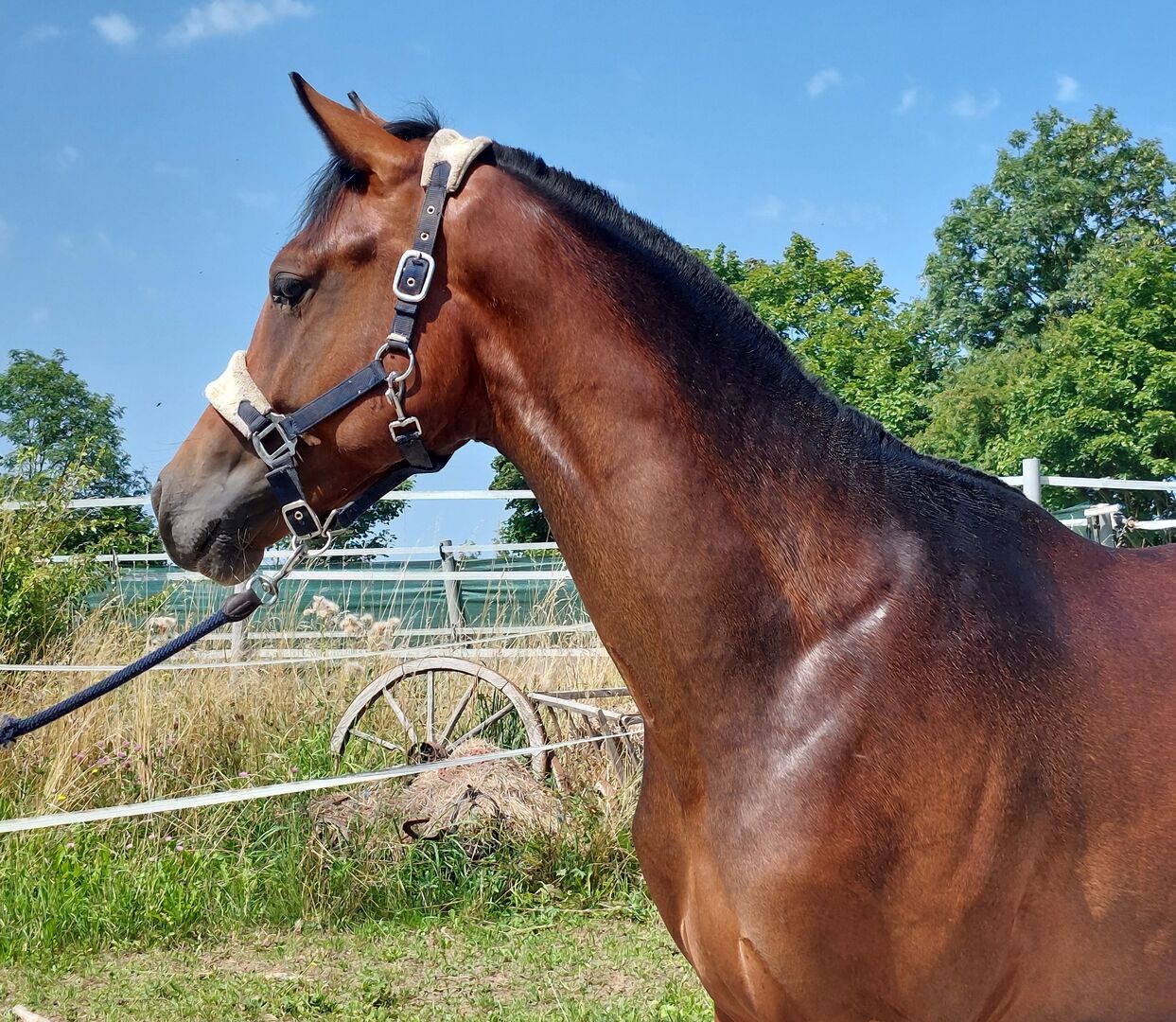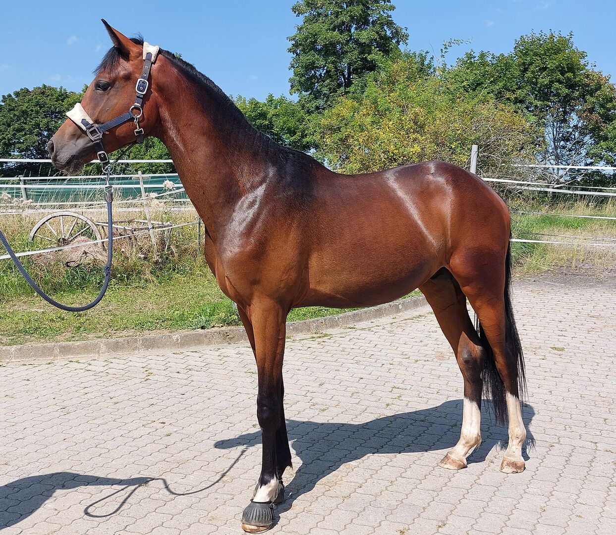 Duits paard - 2 jarige jonge hengst - Zoomaton x Quarterback - Na er een tijdje over nagedacht te hebben, verkopen we op dit moment onze 2 jaar oude, kwaliteitsvolle jonge hengst voor veel minder dan hij waard is, omdat zijn groeischijven nog niet rijp zijn voor zijn leeftijd en hij daardoor altijd een beetje ruw loopt, geen voorraad heeft of permanent kreupel is. Alles werd op de kliniek opgehelderd met röntgenfoto's, echo's etc., want hij zou eigenlijk volgend jaar gekeurd worden. Niets mocht een toekomst als rijpaard in de weg staan. Nu hebben we in zijn voordeel beslist en zoeken we een nieuw thuis waar hij zijn tijd kan krijgen (waar geen haast is voor de komende 1-2 jaar) en waar hij gewoon in alle rust kan groeien en ontwikkelen.
