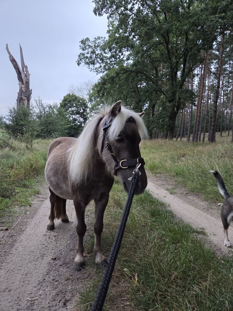 Met pijn in ons hart moeten we ook afscheid nemen van onze kleine halfbloed Shetland pony Desperado (Milky), omdat we helemaal stoppen met het houden van privé paarden. We wensen hem ook een geweldig nieuw thuis, omdat we om persoonlijke redenen helemaal stoppen met het houden van privépaarden.