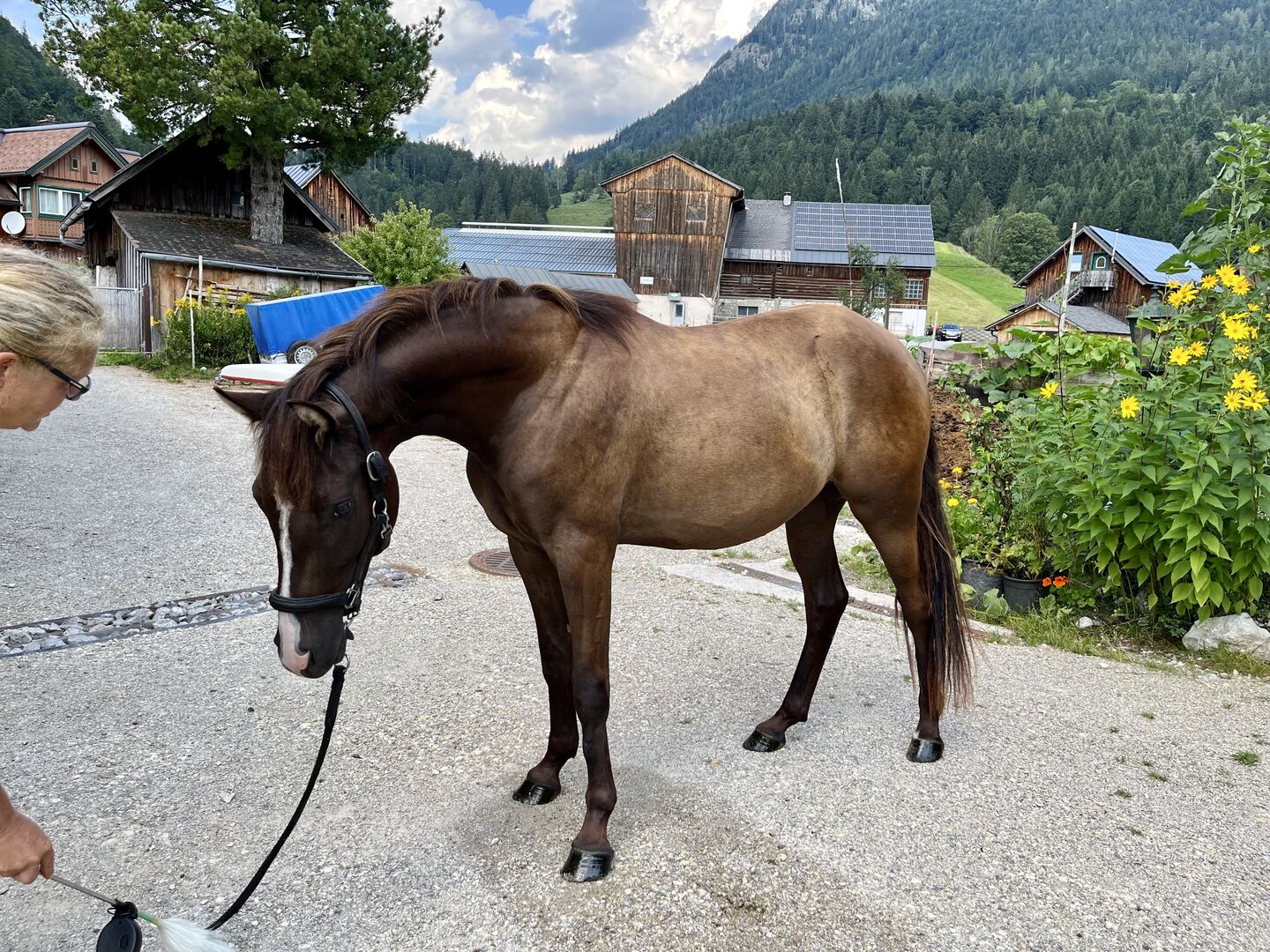 Duitse Pony - Hoogwaardige jonge pony Zeer goede gangen, heerlijk vriendelijk karakter, nieuwsgierig, mensgericht, een afstamming die hoop geeft op een succesvolle sportcarrière of een kwaliteitsvolle vrijetijdspartner, visueel een absolute blikvanger, gezond, sterk correct fundament, grootramig, onverschrokken, laat zich zonder problemen beslaan, wordt regelmatig zonder problemen aangeboden aan de hoefsmid, opzadelen of hoofdstellen geen probleem, geschikt voor belading.