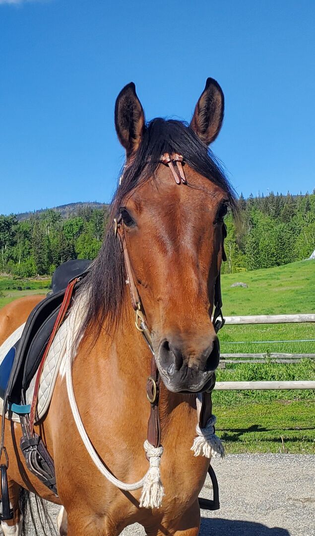 Dun Tobiano merrie - Jolene is een 6-jarige Free Range Horse merrie, geboren en getogen in Canada. Ze is ongeveer 154 cm lang, kerngezond en heeft perfecte hoeven. Jolene is zeer mensgericht en ongecompliceerd in de kudde. De merrie is 10 maanden regelmatig bereden en gaat graag off-road. Jolene is zekervoetig over heuvel en dal, maar slaat ook een goed figuur in dressuurwerk. Ze is heel ongecompliceerd in de kudde en een eerlijke baas. Jolene gaat eind juli naar Zwitserland. Ze kan direct naar haar nieuwe thuis gebracht worden of opgehaald worden in Oost-Zwitserland. Meer info over haar op freerangehorse.com