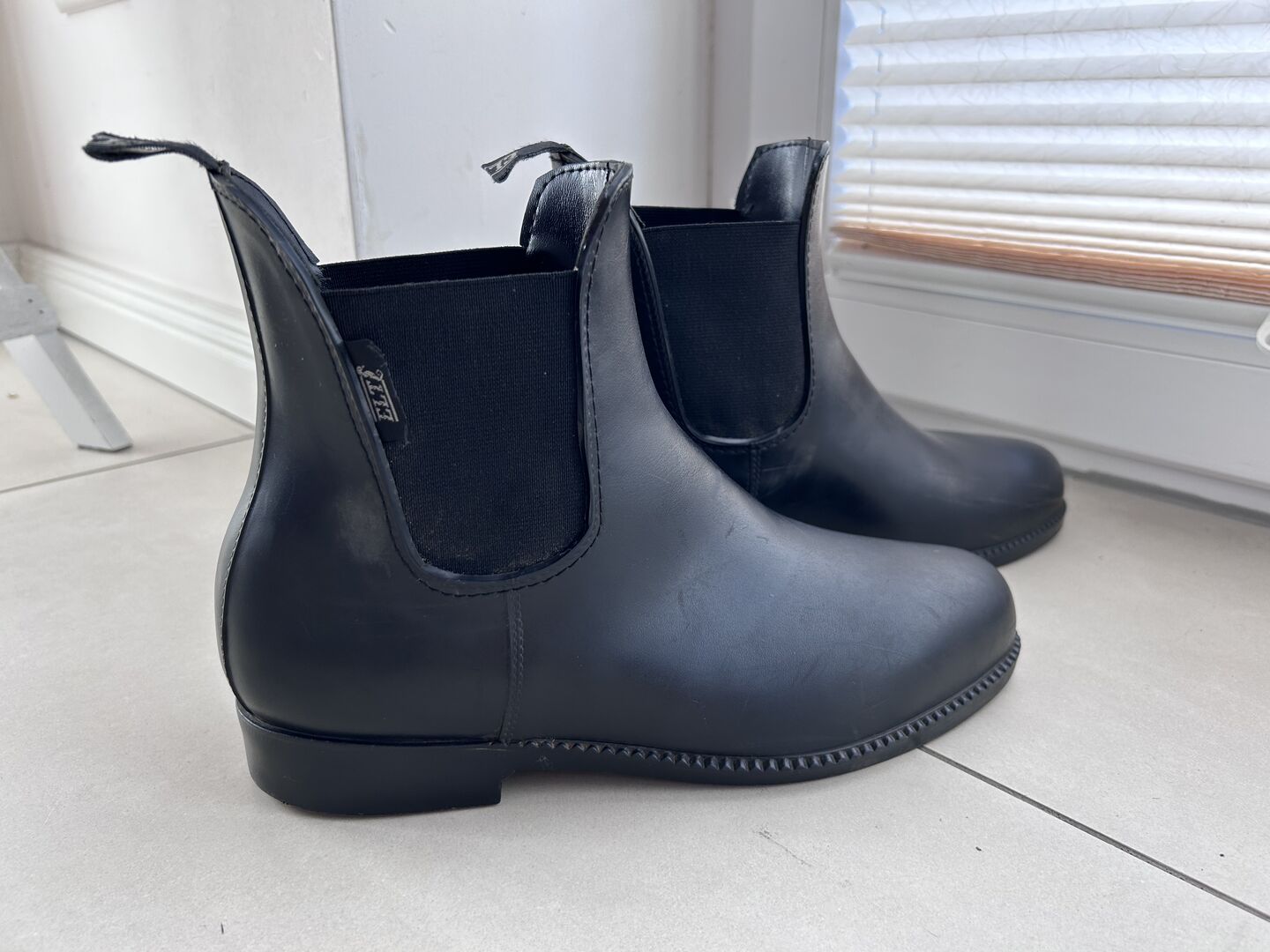 ELT enkellaarsjes - Ik verkoop hier goed onderhouden rubberen rijlaarsjes van het merk ELT in maat 40. Normale gebruikssporen zijn aanwezig - voornamelijk aan de binnenkant van de laarzen, waar de laars contact heeft gehad met het zadel (zie foto's).