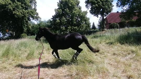 Engels volbloed merrie - Ik heb besloten om mijn 12 jaar oude volbloed merrie te verkopen omdat ik stop met rijden vanwege een blessure. Ze is erg gevoelig in de omgang, een beetje onrustig en snel bang. Helaas heeft ze al veel slechte ervaringen met mensen gehad. Helaas werd 2 jaar geleden, kort nadat we haar kregen, een lichte kissing spines en een lichte verandering in het kistbeen vastgesteld. Sindsdien wordt zij regelmatig behandeld door een osteopaat en een hoefsmid. Ze is pijnloos en heeft geen pijn gehad in de tijd dat we met haar reden. Maar omdat we in de winter helaas geen trainingsmogelijkheden hebben om haar spieren te onderhouden, hebben we helemaal opnieuw moeten beginnen en heeft ze altijd veel moeten staan. Ze is een levendig paard, ze galoppeert, springt en springt over de paddock en heeft ook geen problemen met rollen en vindt dit leuk om te doen. Ze loopt op blote voeten met ons. Ik wil haar alleen in de buurt verkopen omdat ze me na aan het hart ligt en geen wisselbeker meer mag worden. Met veel tijd en geduld zal ze weer een goed rijpaard worden. De röntgenfoto's kunnen natuurlijk op verzoek worden bekeken. Als u nog vragen hebt, kunt u contact met ons opnemen. Het is geen noodverkoop. Geen dealers en geen rijscholen.