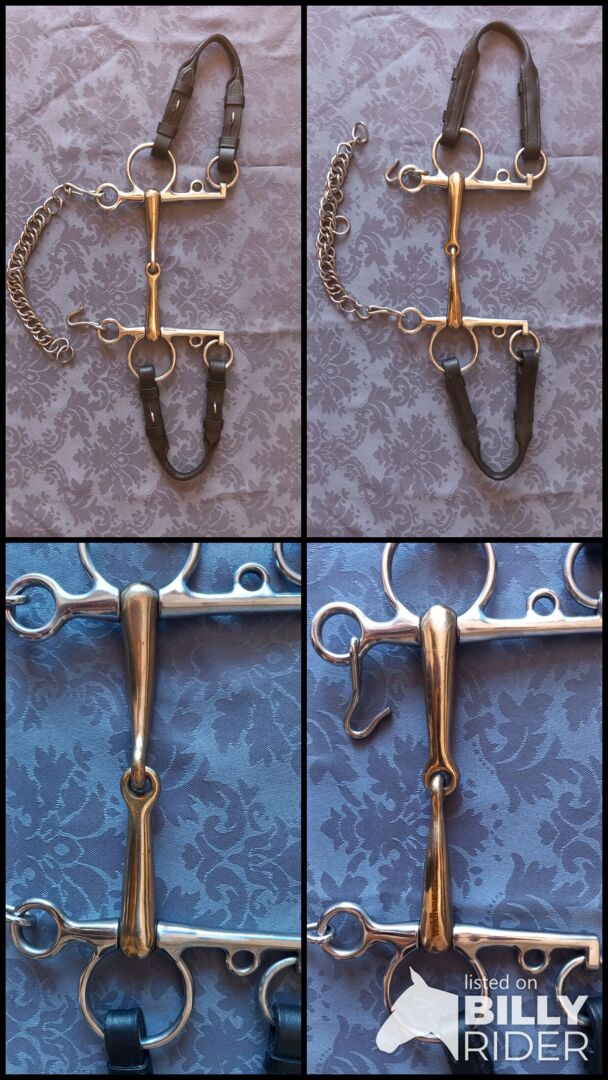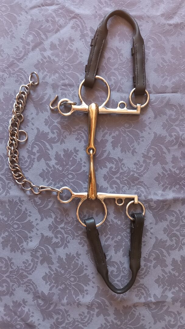 Enkele gebroken Pelham - Bit met Pelham - Riem - Het bit is minder dan een jaar oud en paste helaas niet bij ons zoals we ons hadden voorgesteld. We hebben het drie keer gebruikt en toen besloten we dat het niet bij ons paste. Sindsdien is het schoongemaakt en opgeborgen in een kast. Het bit kan worden opgehaald of verzonden. (Geen aansprakelijkheid voor verloren of beschadigde goederen)