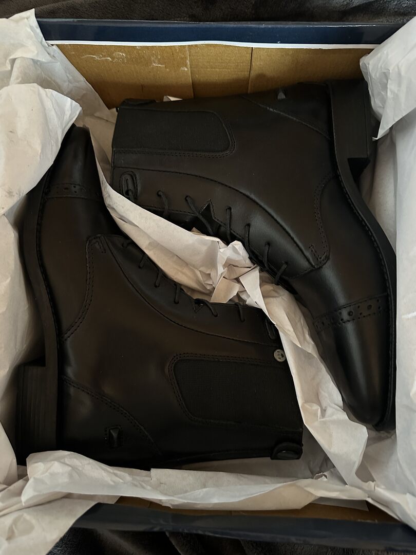 De schoenen zijn alleen gepast en daarna meteen weer opgeborgen omdat ze voor mij te klein zijn.