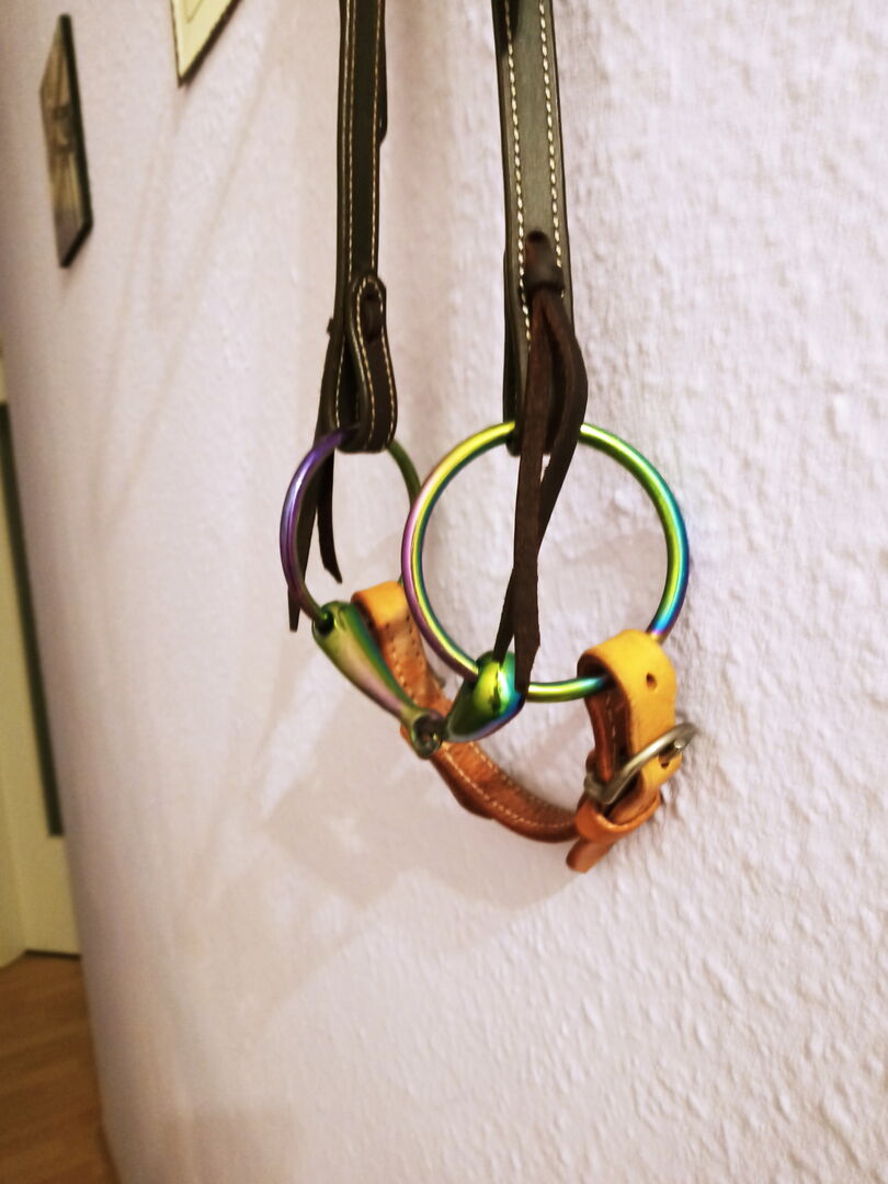 Ook verkrijgbaar met een nieuw enkelgebit 'Regenboog' watertrens maat 11,5cm & lederen kinriem (zie foto) - 15€ meerprijs.