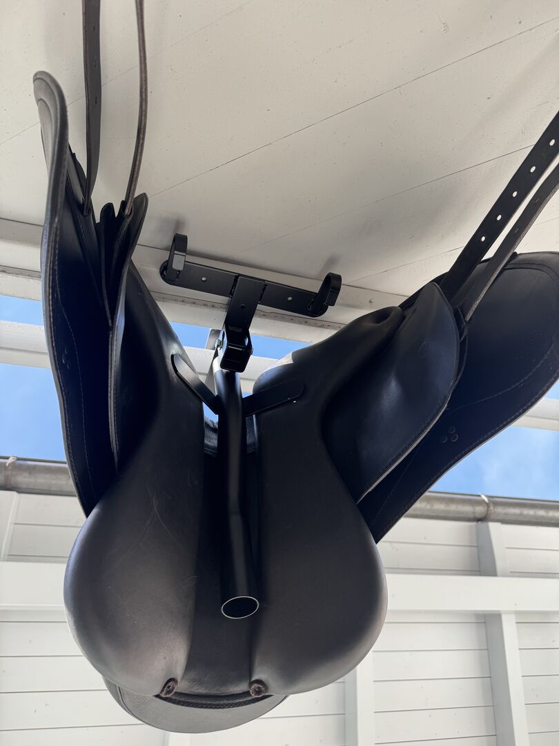 Eques Expert 17" - 17", latex vulling, slokdarmplaat zwart, rood, gebruikelijke gebruikssporen, ongevalvrij.