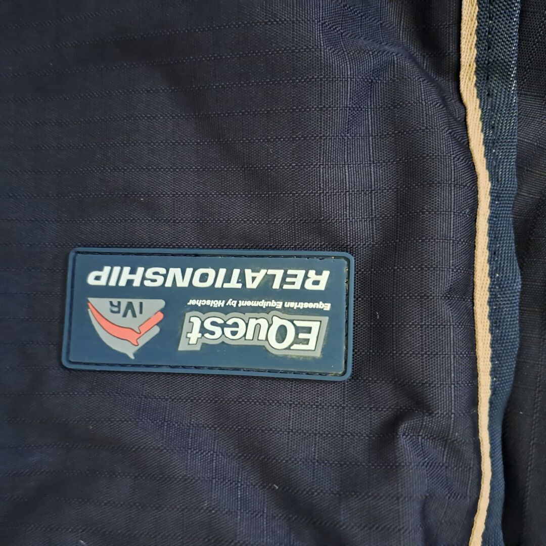 EQUEST winterdeken donkerblauw 155cm 100g - De deken heeft maar één nacht op mijn paard gelegen en is daarna professioneel gereinigd. De ruglengte is 155 cm, het is een deken van 100 gram.