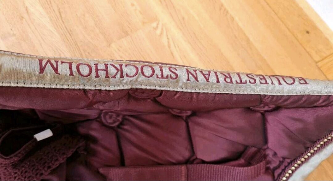 Equestrian Stockholm Merlot dressuur zadeldek - Ik verkoop mijn Equestrian Stockholm dressuurzadeldek in de kleur merlot/goud.