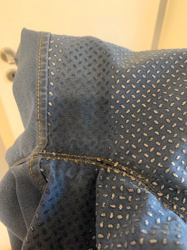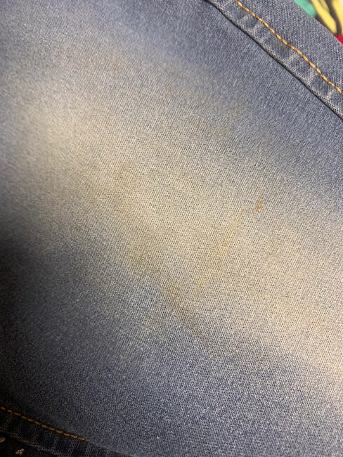 goede staat, aangezien de grip in het kruis is losgekomen (volgens mijn dochter werkt de broek nog wel) en onbehandelde schaduwvlekken op het linker bovenbeen - zie foto