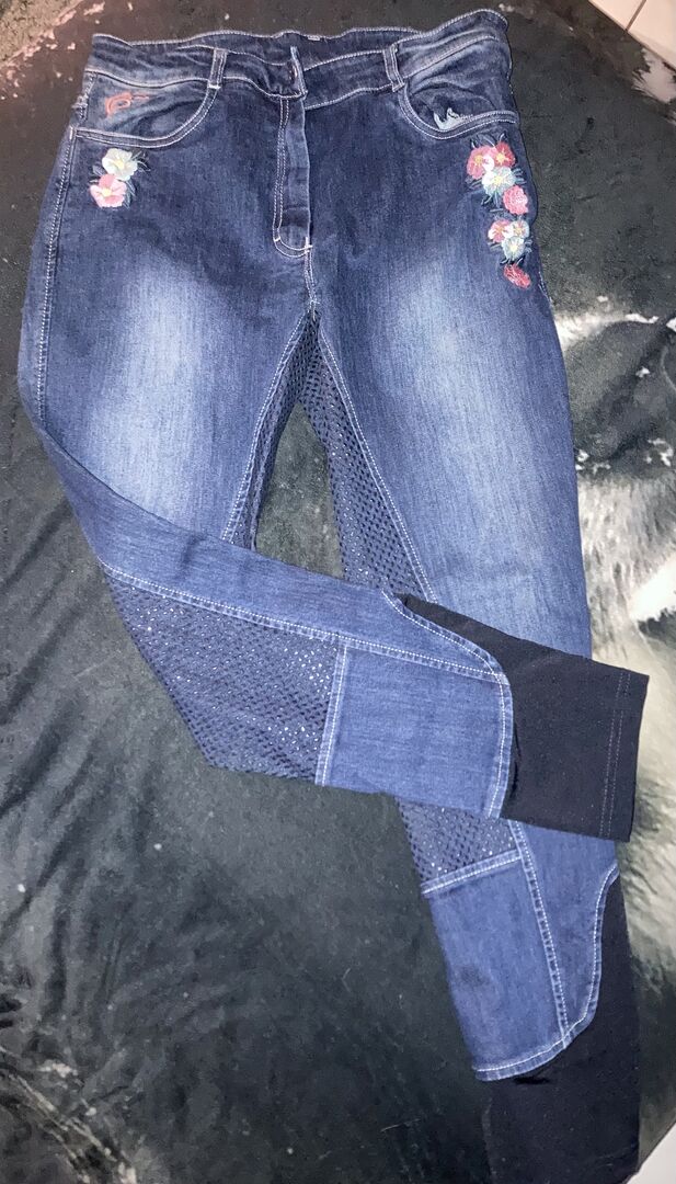 Equilibre Grip Full Seat Rijbroek Maat 40 - Rijbroek in denim look met bloemenapplicaties
