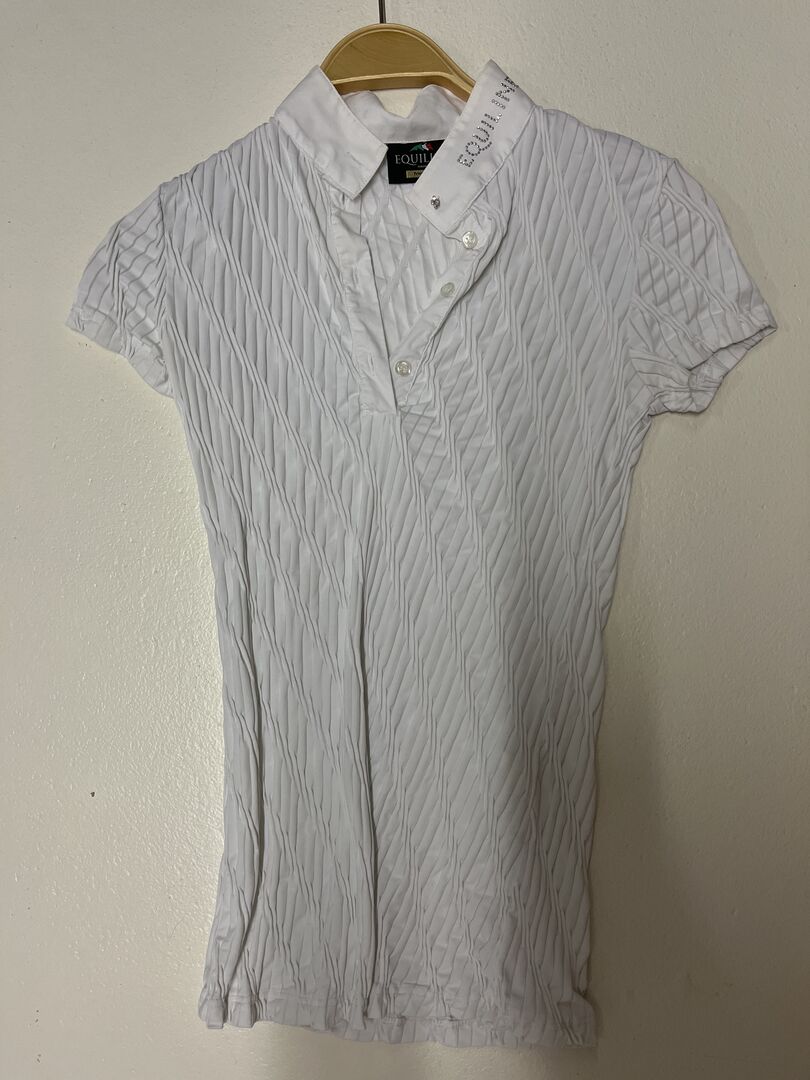 Equiline Dames Blouse Wit Maat 40 ( S ) - Ik verkoop deze zeer mooie Equiline show blouse. Het is in zeer goede staat, want het is nauwelijks gedragen. Alle steentjes zitten nog op de blouse. Neem contact met me op als je geïnteresseerd bent!