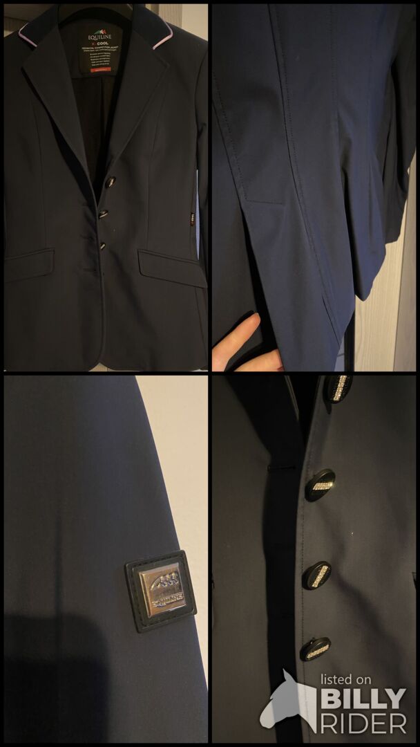 Equiline wedstrijdjas X-Cool, maat 34 - Ik verkoop een donkerblauw X-cool wedstrijdjasje voor slanke dames/meisjes in maat 34 van Equiline. De stof draagt comfortabel, de knopen zijn onbeschadigd. Geen retour of garantie, als prive verkoop. Paypal beschikbaar.