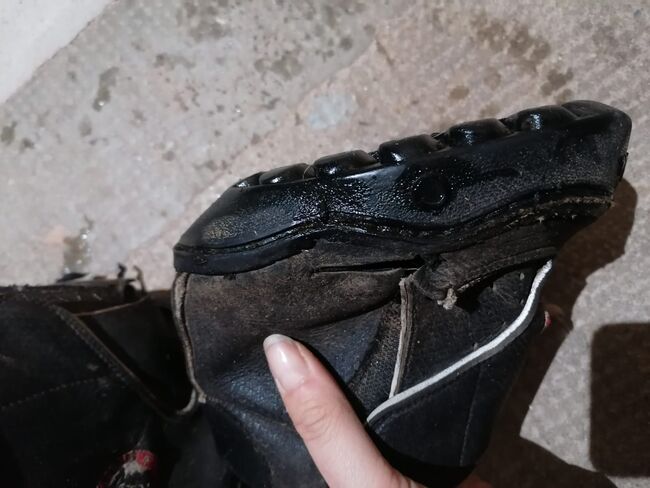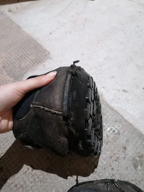 Equine Fusion All Terrain Gr 14 gebruikt - Ik verkoop mijn paar Equine Fusion Jogging Shoes All Terrain in maat 14. Deze zijn goed gebruikt, zowel voor het rijden als als paddock/zieke hoefschoenen. Ze hebben daarom een paar imperfecties. Ze zijn al gerepareerd omdat de stof van de zool is losgekomen. Sindsdien hebben ze zich echter goed gehouden. Ze hebben ook kleine gaatjes in de voering. De zool is echter nog heel goed en heeft nog een goed profiel. Alles is herkenbaar op de foto's. Ik bied ze aan omdat mijn paard helaas is overleden. Ik weet dat ze niet meer in de beste staat zijn. Maar misschien heeft iemand er nog wat aan, bijvoorbeeld als zieke hoefschoen.