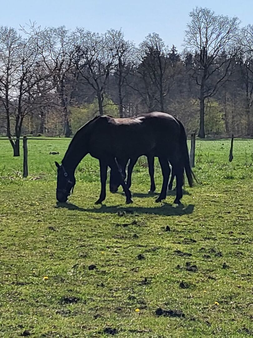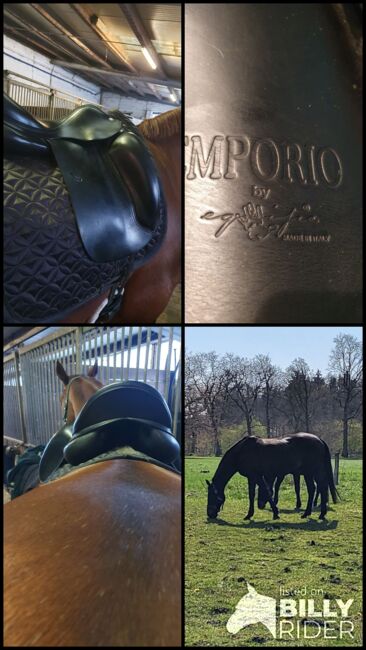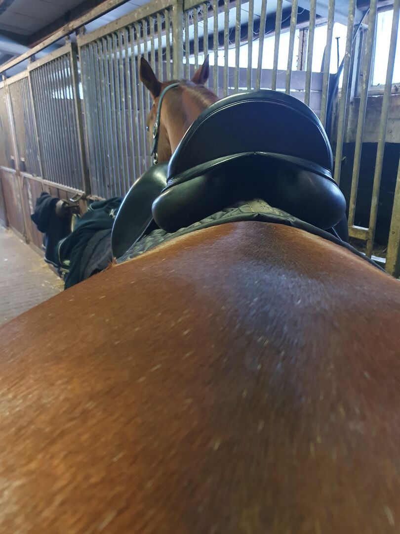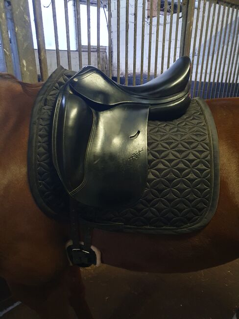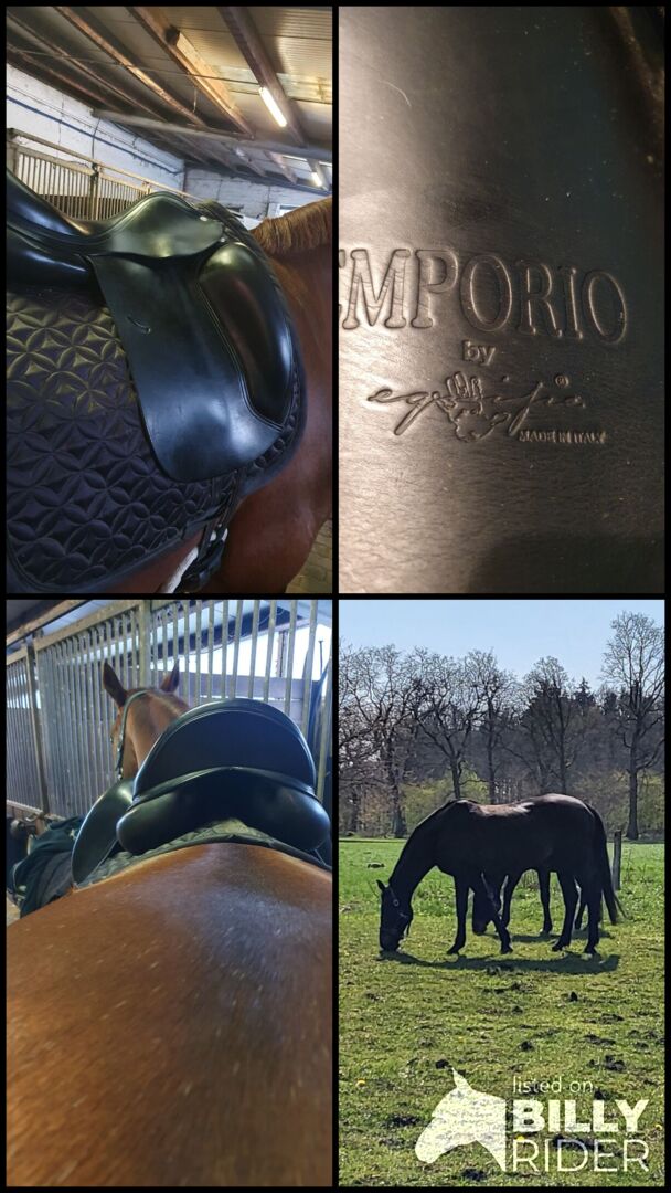 Equipe Emporio Dressuur Zadel - Ik verkoop mijn gebruikte dressuurzadel van Equipe, model Emporio, geen mono flap 17 inch. Het zadel lag op mijn bloedgemerkte Hannoveraanse merrie, laatste foto, maar ze is nu met pensioen. Het paard op de foto's met zadel is mijn andere paard.