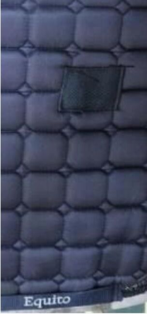 Doordat er een stukje van het dekje is kapot gegaan, is er een lapje stof op gestikt. Is niet te zien onder het zadel. Voor de rest super mooi dekje
