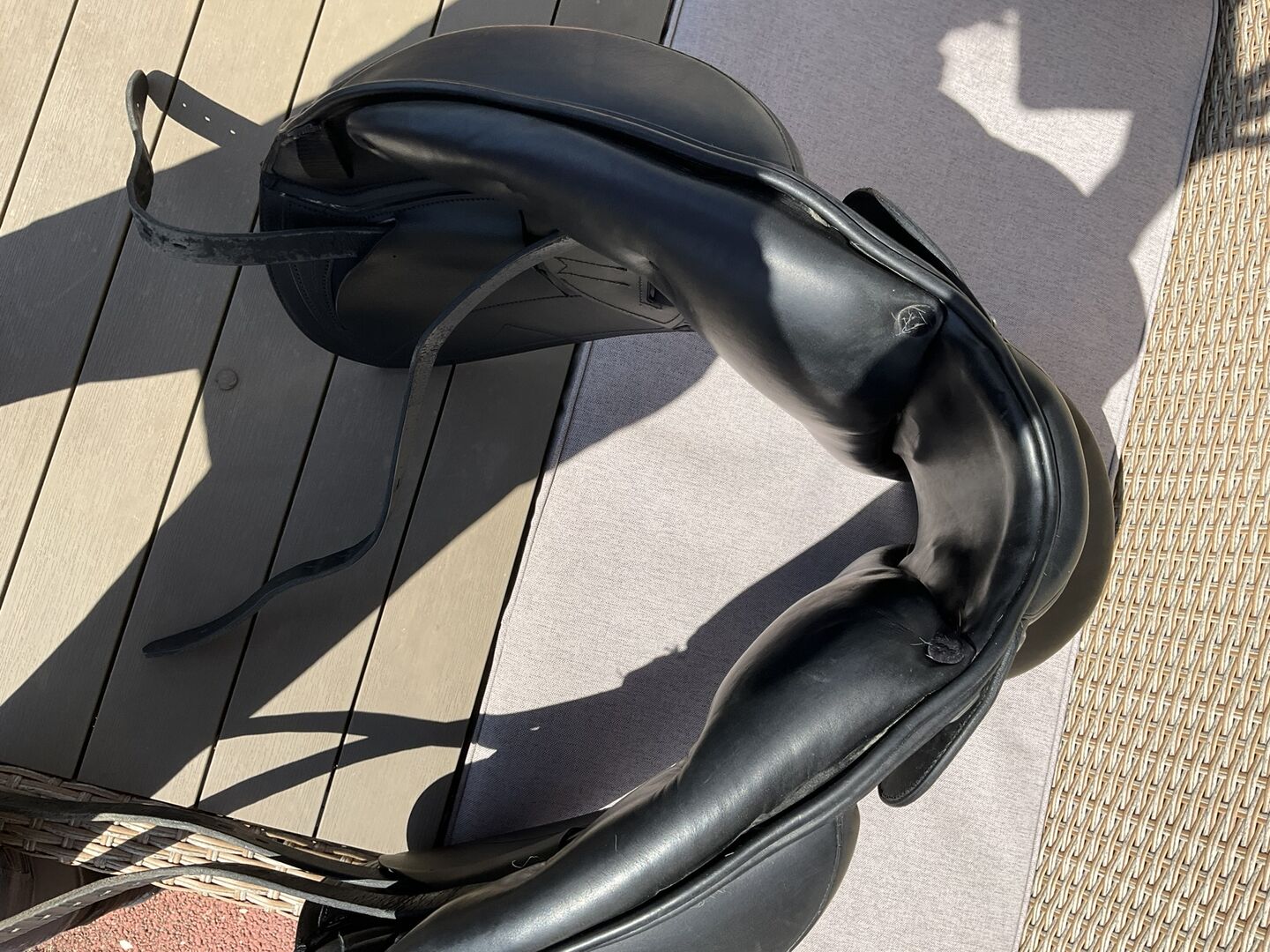Erreplus Dressuurzadel DM Mono Zadel - Helaas moet ik afscheid nemen van mijn Erreplus dressuurzadel DM. Ondanks aanpassing past het niet perfect op mijn nieuwe merrie. Het zadel is goed verzorgd en is 2 maanden geleden nieuw opgevuld. Het vertoont normale gebruikssporen. De diepe zit biedt een optimale middenpositie. Het monoblad geeft het been een mooie verbinding met het paard. Dit ondersteunt gemakkelijke hulpen.