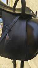 Erreplus Impuls dressuurzadel 17,5" zwart topconditie - Erreplus Impuls dressuurzadel in topconditie! Geschikt voor paarden met een vrij rechte rug. Het zadel is in de zomer opnieuw bekleed en er is een spijkerstrip toegevoegd, maar deze kan eenvoudig verwijderd worden. Het zadel is altijd goed onderhouden met de originele Erreplus leerschuim en leerbalsem. Verplichte lichte gebruikssporen op de zadelklep. Verder tip top, geen schaafplekken of dergelijke. Discrete lakapplicaties in donkergrijs op de cantle en zadelklep. Verstelbare klittenband pads. De originele zadelhoes en de lederen verzorgingsset worden meegeleverd. Het zadel is altijd schoon en droog opgeslagen geweest. Let op: de stijgbeugels en stijgbeugelriemen zijn NIET inbegrepen in het aanbod!