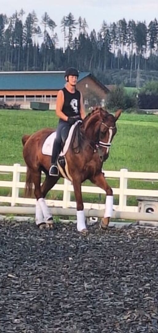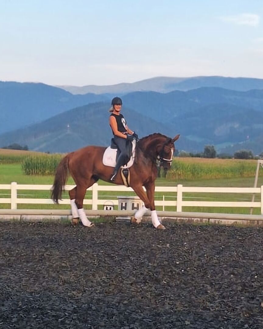 Ervaren, ongecompliceerde dressuurmerrie - Te koop is een prachtige vosmerrie uit de Oostenrijkse fokkerij. Ze is ongeveer 173 cm groot en is sinds 2017 in mijn bezit. Ze is helemaal gezond en wordt alleen verkocht vanwege familieveranderingen.