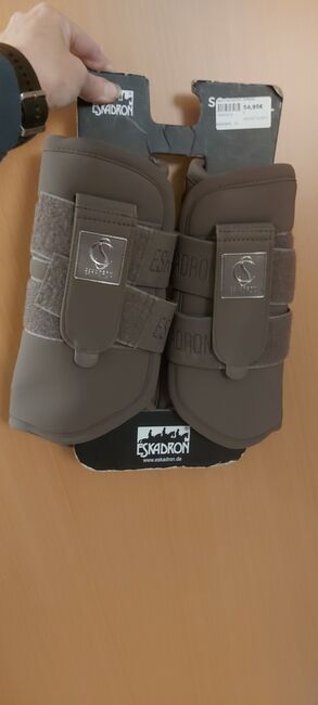 Eskadron beenkappen XL - Ze waren alleen op het paard om te passen en zijn helaas te lang. Qua breedte zouden ze perfect passen, en deze sluiting is ook ideaal, maar helaas zitten de uiteinden in de handwortel- en kogelgewrichten.