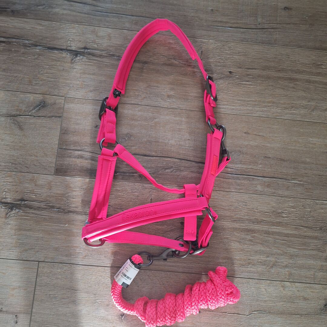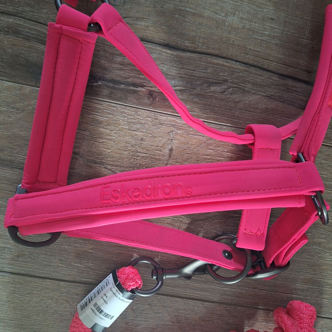 Eskadron halster met touw Reflexx Roze - Ik verkoop dit weinig gebruikte halster met een nieuw halstertouw. Het halster heeft maat WB. Het heeft op sommige plekken een lichte verkleuring, die ik er niet uit kreeg toen ik het voorzichtig met de hand waste. Niet verkleurd.