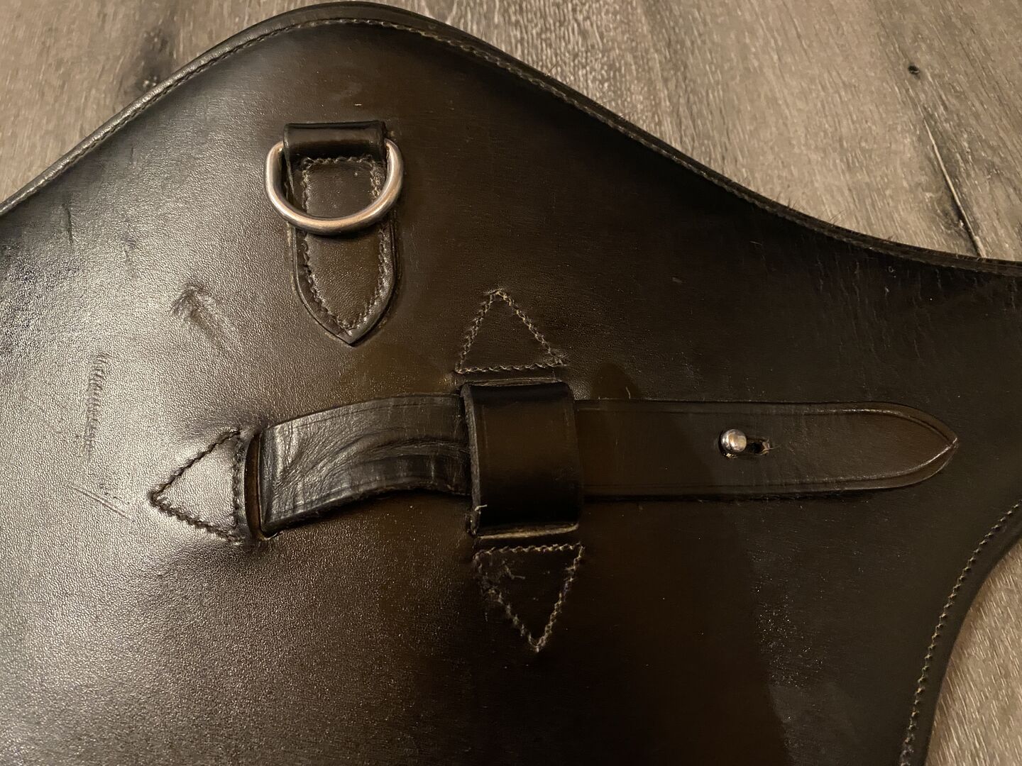 Merk: Eskadron Leer kleur: Zwart Afmeting: 130cm Elastische inzet aan beide zijden