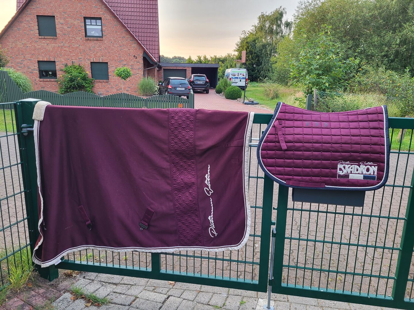 Ik verkoop mijn Eskadron zweetdeken en zadeldek uit de Platninum serie in bordeaux.