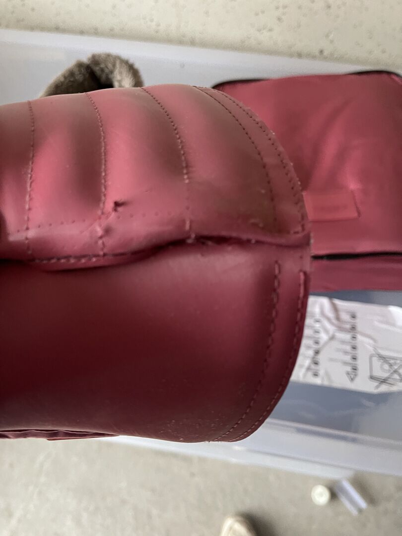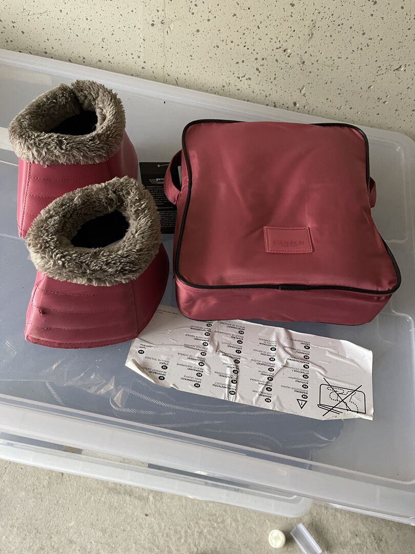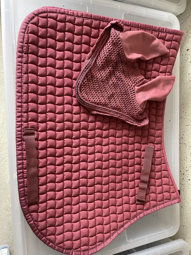 Ik verkoop een zelden gebruikte Eskadron set in de kleur rouge. Inbegrepen is het zadeldek in VS/WB, het vliegenmutsje, halster+breiwerk en bandages in WB. De hoefklokken zijn in XL en hebben, zoals u op de foto kunt zien, helaas loszittende naden die de werking niet beïnvloeden.