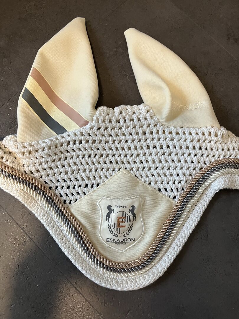 Eskadron vliegenmuts / geitenoren - Te koop zijn nieuwe vliegenoren van Eskadron in maat pony. Omdat de oren te klein zijn voor mijn pony, zaten ze alleen op de pony om te passen.