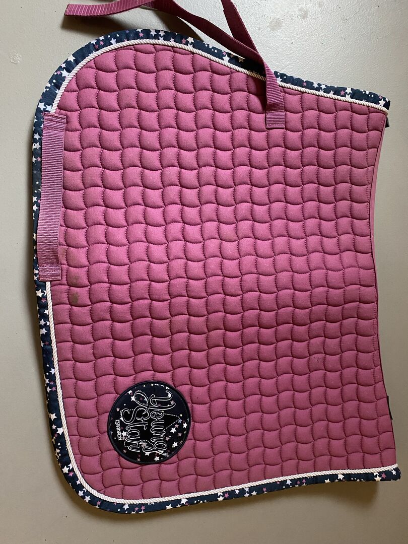 Eskadron Young Star Pony Zadeldekje - Het zadeldek is in de maat pony. Het kan opnieuw gewassen worden voor de verkoop. Het is in gebruikte staat en is aan één kant opgelapt, wat niet zichtbaar is als er een zadel op ligt!