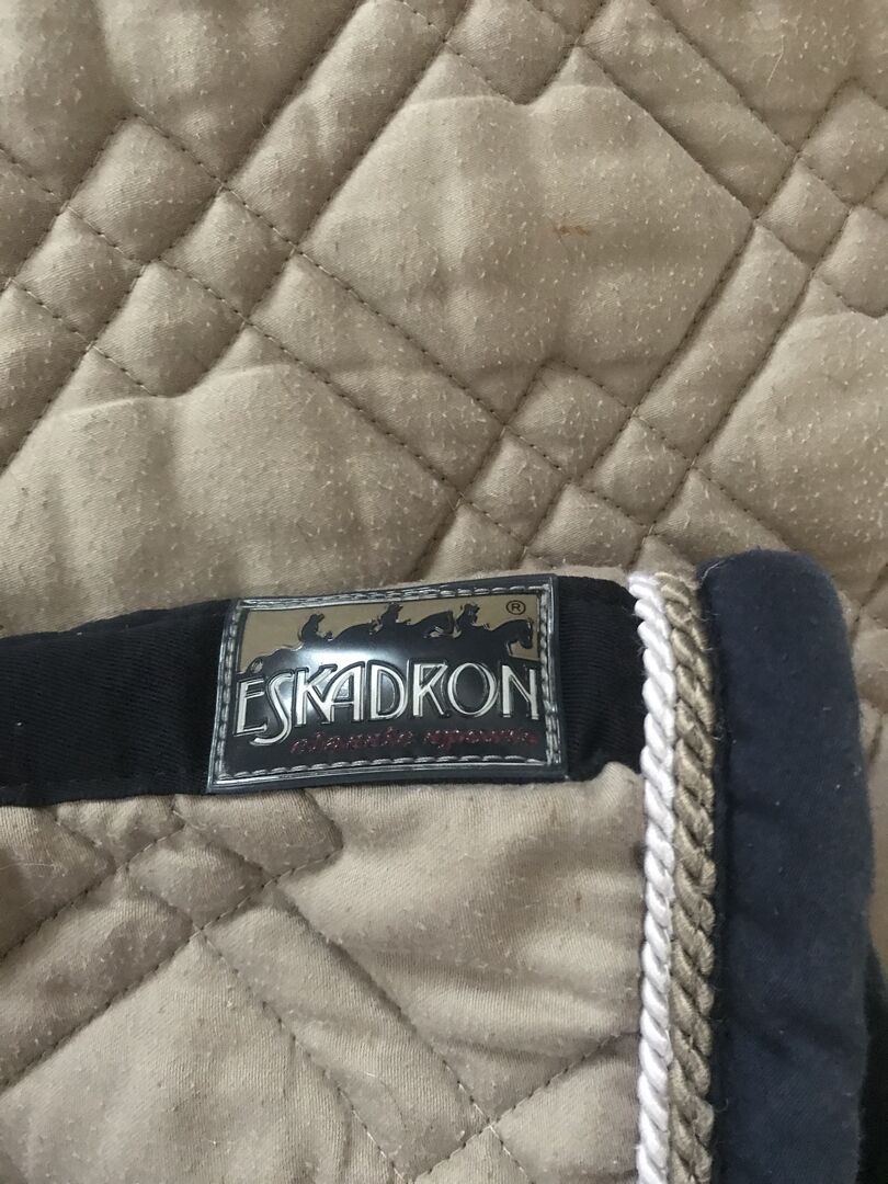 Eskadron zadeldek beige navy - Hallo, ik verkoop mijn goed bewaarde Eskadron zadeldek in maat pony.