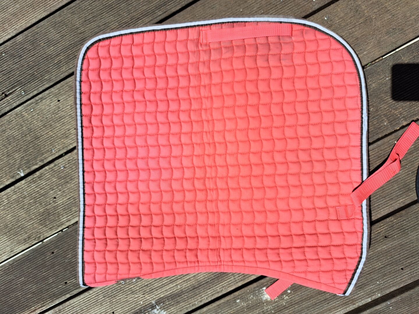 Eskadron zadeldek DL in rood - Het zadeldek heeft de gebruikelijke schaafplekken van het zadel, maar die zijn niet zichtbaar onder een zadel. Voor de rest is het in goede staat en heeft het geen beschadigingen.