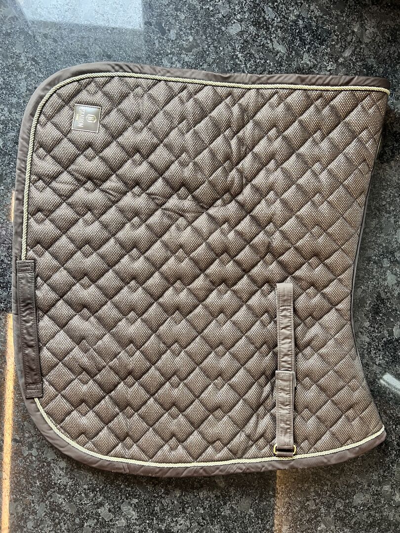 Ik bied een prachtig Eskadron zadeldek aan in mesh glitter bruin - een echte blikvanger met een elegante glans. Het is pas gewassen en klaar voor het volgende gebruik.