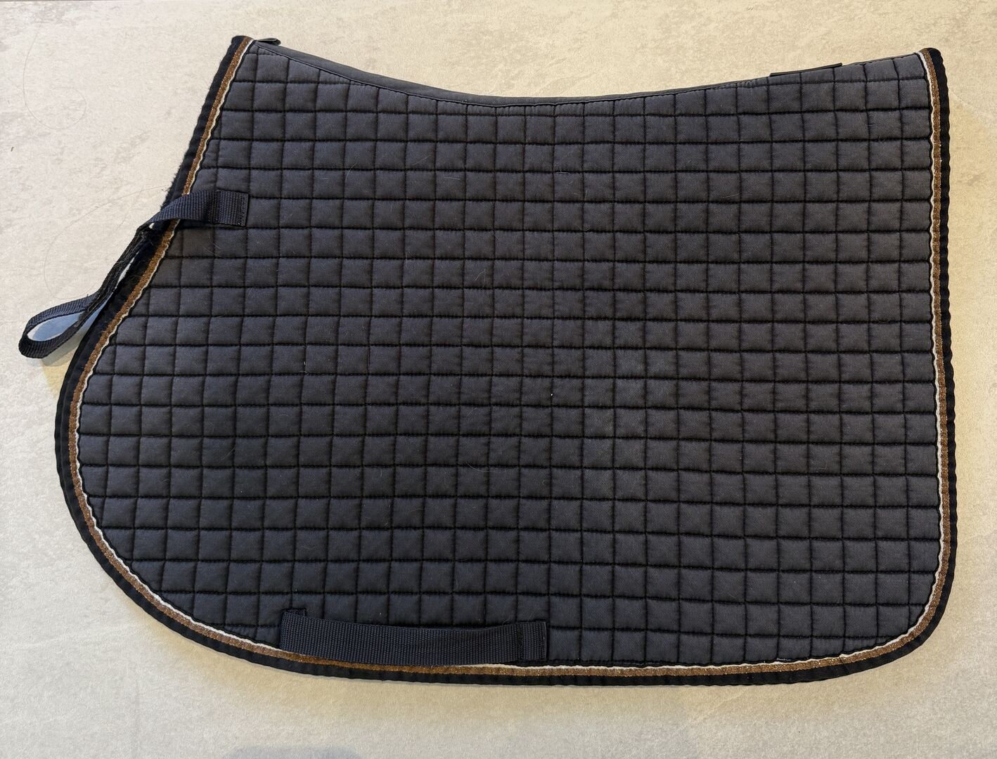 Eskadron Zadeldek VS - Te koop een zwart Eskadron zadeldek met bronskleurige en witte bies.