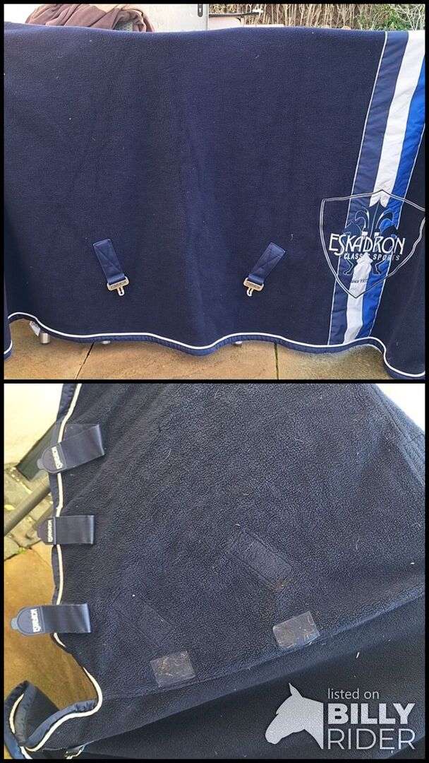 Eskadron zweetdeken 145 / L Navy Groot Vierkant - In zeer goede staat verkerende sweatdeken met nekgedeelte uit de H/W 2018 collectie. Het nekgedeelte kan worden opgerold tot een kraag. Alle klittenbandsluitingen zijn in topconditie en houden goed vast!