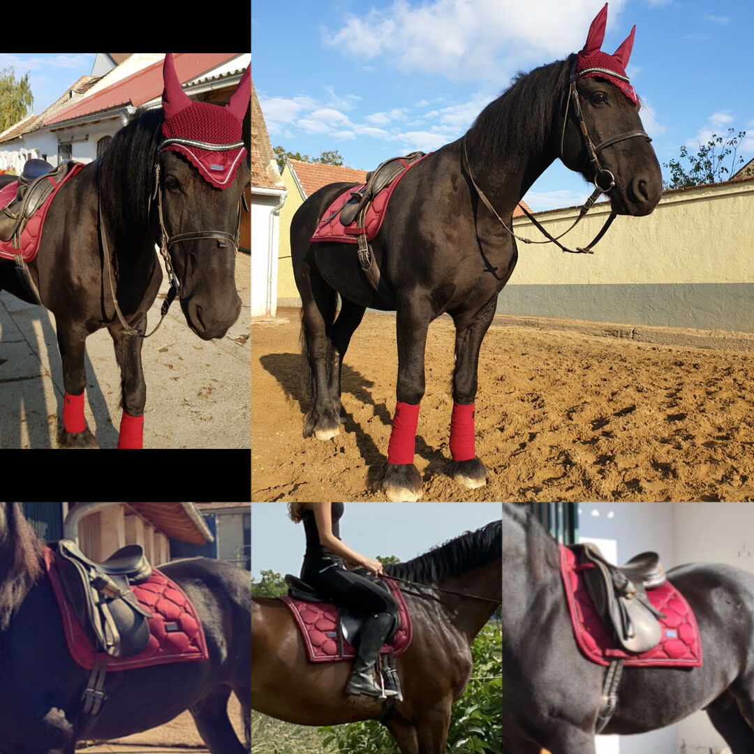 Esstockholm Zadeldek/Set - ❤️Equestrian Stockholm - Zadeldek Dressuur Bordeaux aan 80€ -> originele prijs 90€. In set met bijpassend vliegenmutsje 110€ nieuwe prijs vliegenmutsje -> 50€❤️ + Bijpassende bandages rond 40€ -> nieuw 60€ Totale set Esstockholm -> 150€❤️