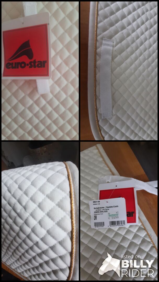 Euro-Star Zadeldekje Dressuur met Gouden Bies - Nieuw Euro-star showzadeldek in champagne. Dressuur. Met gouden bies.