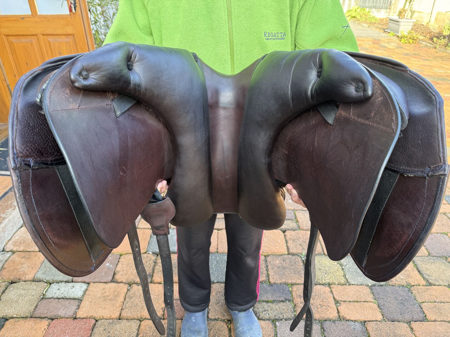 Euroriding Agaat DR, 17 inch - Te koop zo goed als nieuw dressuurzadel van het bedrijf Euroriding model Achat Sensitive in bruin met halfdiepe zit en klittenband blokken. Het zadel is gekocht in oktober 2024 en slechts 5 maanden gebruikt! Het was altijd droog opgeslagen en binnen getemperd. Het heeft een zitvlak van 17 inch en een 38 kamerbreedte. Het is in topconditie! Nieuwprijs: 2130€.Ik verkoop het zadel alleen omdat het voor mij te klein is met 17 inch en ik ben overgestapt op een 18 inch! Ik zat op een korte PRE met hoge schoft! Als je het koopt is verzekerde verzending mogelijk tegen betaling van de verzendkosten! Zadel bevindt zich in Neder-Oostenrijk, omdat ik momenteel hier woon! Geen garantie of retournering als particuliere verkoop!
