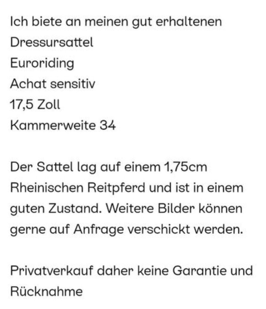 Hi Janett, I am interested in your ad 'Euroriding Achat sensitiv 17.5 DR / Euroriding Achat sensitiv Skyline'. Please contact me! 😊