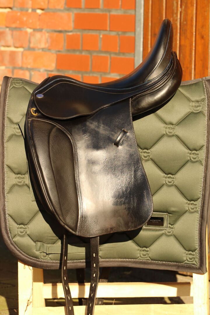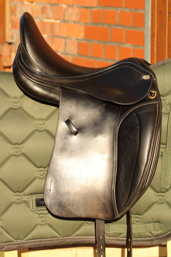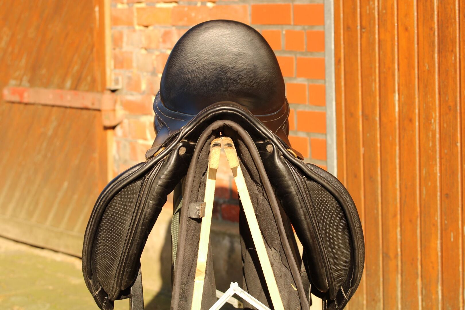 Het werd gebruikt op een zeer kort, breed Fjordenpaard met weinig schoft. Valvrij en regelmatig gecontroleerd door mijn zadelmaker, de wollen voering is lekker zacht. Hij werd regelmatig schoongemaakt en ingevet.