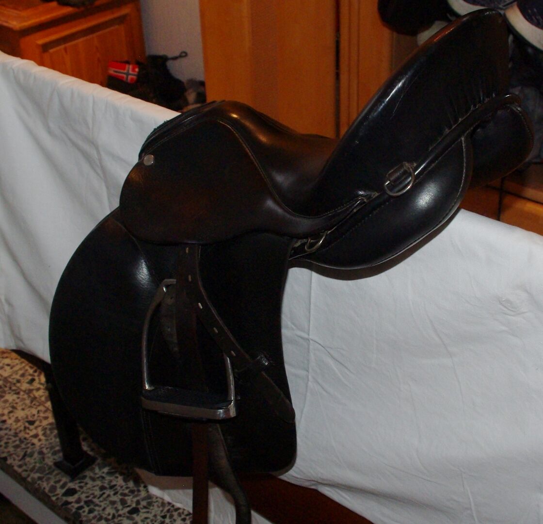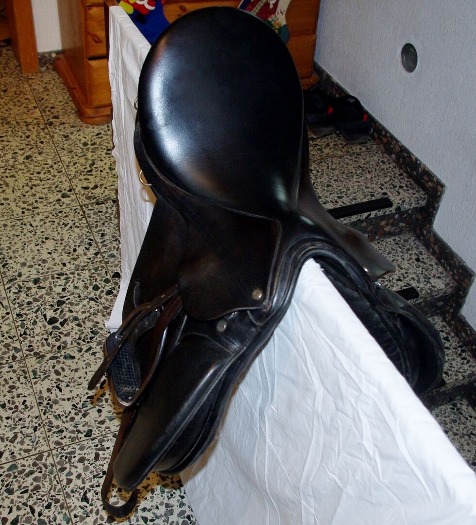 Euroriding VS Zadel Versterkt "Dressuur" 17.5 - Euroriding VS Zadel Versterkt "Dressuur" 17,5 Het zadel is ongeveer 1 jaar geleden door een zadelmaker nagekeken (boom en vulling) en goed bevonden. Foto's met extra afmetingen zijn bijgevoegd.
