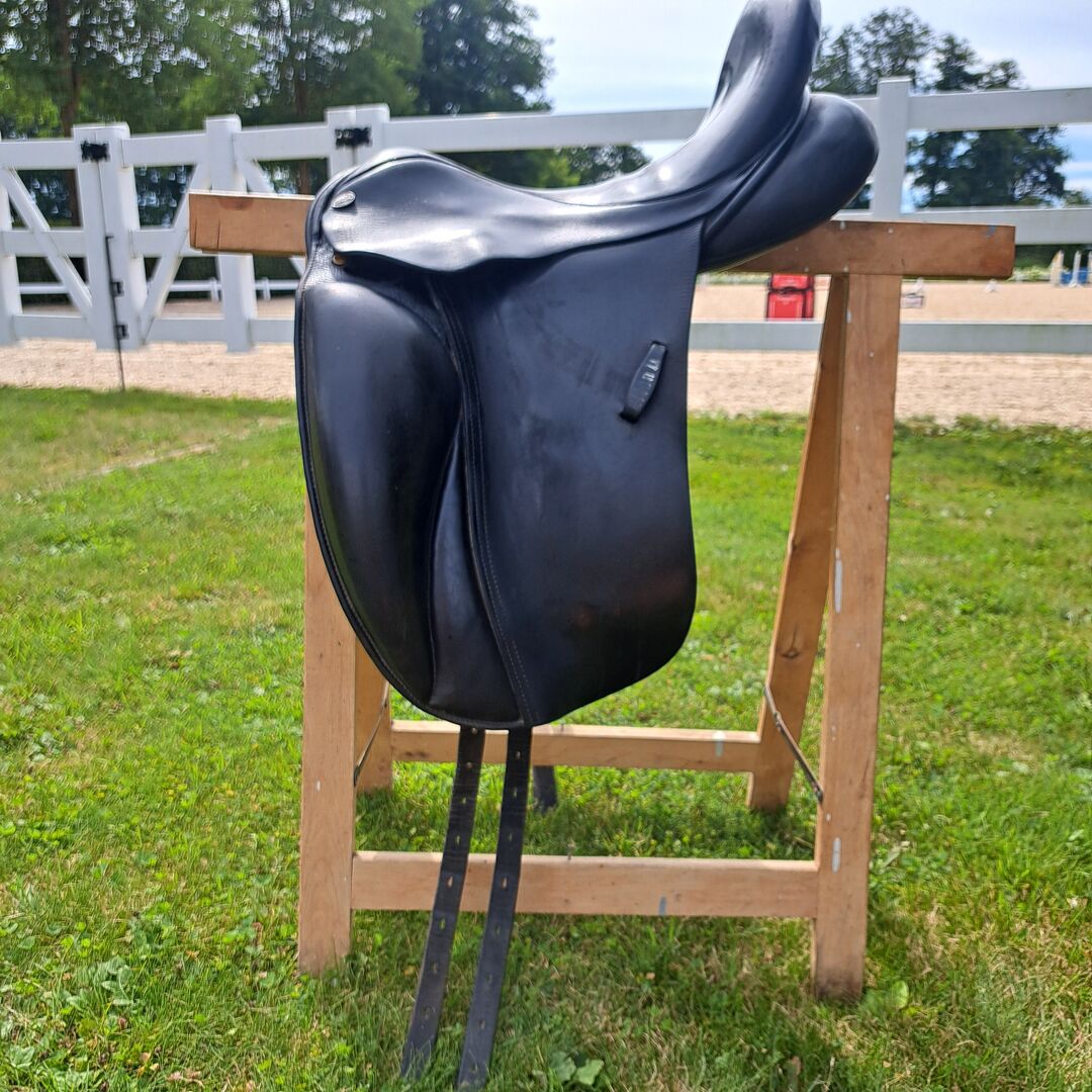 Eurorijdende Titan II - Ik verkoop mijn gebruikte dressuurzadel Euroriding Titan II, 17 inch, Fit 3. Het zadel is in goede staat met normale gebruikssporen.