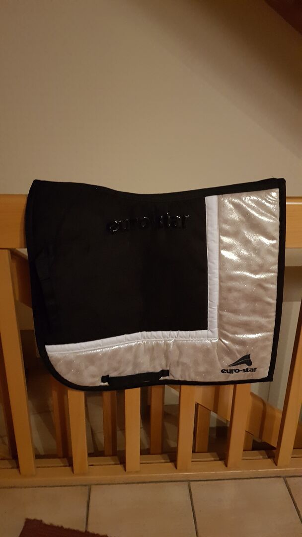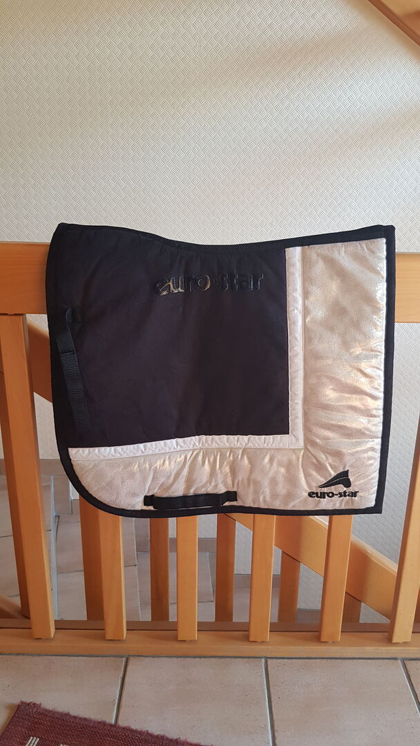 Eurostar Schabracke Special Edition schwarz-goud, WB (vol) - Hallo allemaal, Ik verkoop een Eurostar zadeldek. Hij staat te boek als een Special Edition en heeft de kleur zwart-goud. Het zadeldek is anatomisch gevormd en heeft een Eurostar belettering van anti-slip materiaal in het zadelgedeelte. Originele prijs: €69.99