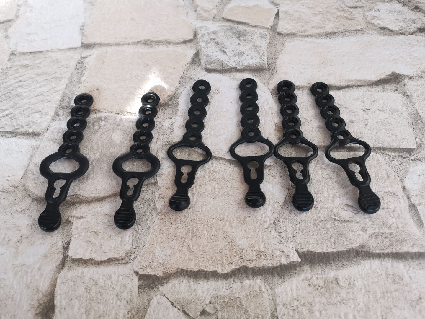Incl 3 maal reserve onderdelen set schroeven, 3 maal elk 2 Elastotop direct (sluiting om in te hangen) en een zakje voor de schoenen.