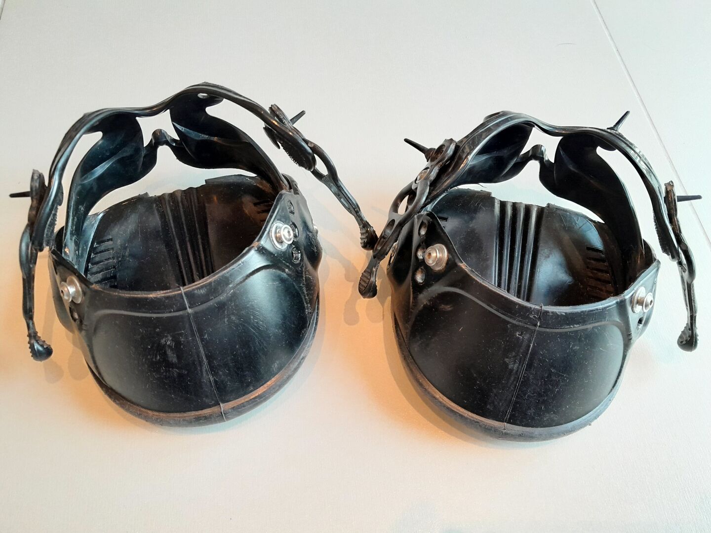 EVO Laarzen 1.21 incl. nieuwe neopreen vulling - De hoefschoenen werden enkele maanden onregelmatig gebruikt omdat ze niet goed pasten. Er zijn dan ook gebruikssporen. Maat 2. De twee bijpassende neopreen kussentjes in oranje-rood zijn gloednieuw!