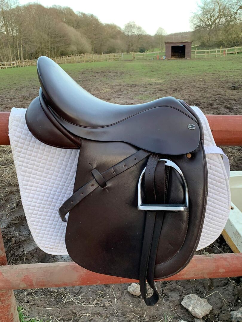 Farringtons dark brown leather saddle 17.5". Comes with stirrups and leathers. Lovely saddle. Great condition and markings. All proceeds from the sale will go to a horse sanctuary
